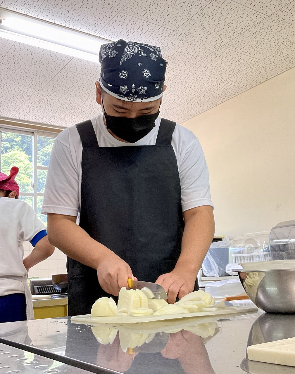 夏休み初日の登校日、「やってみよう」の時間に中学部で漬けたらっきょうの試食をしました。